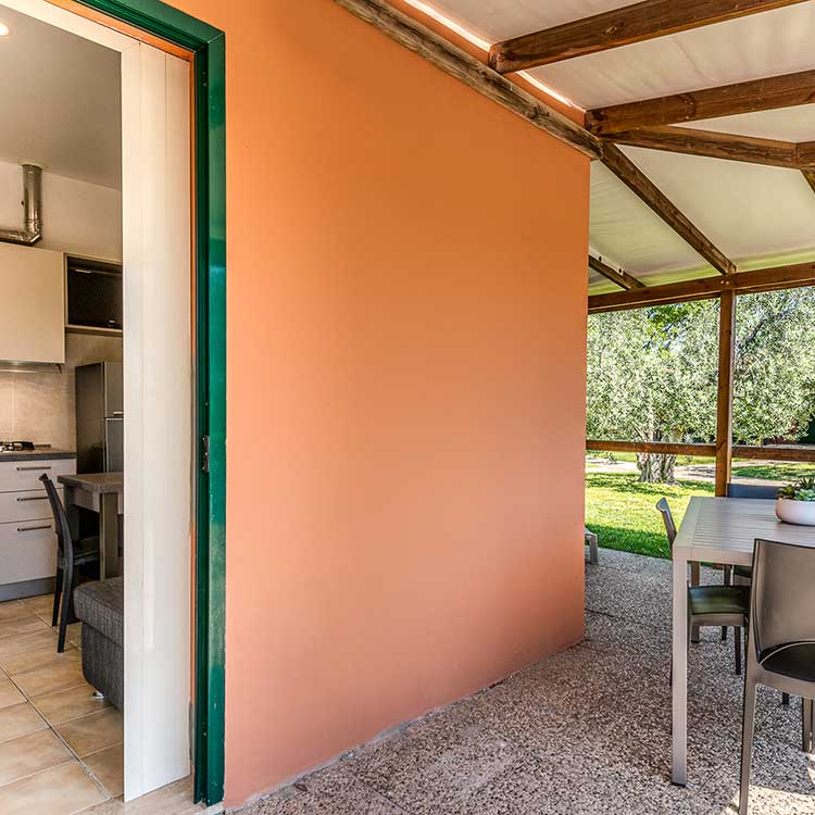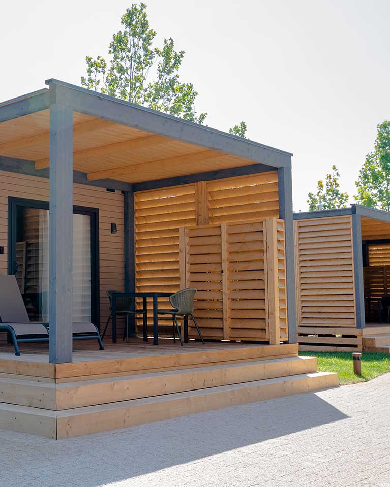 Die Bungalow Prestige und die Mobilhome Premium verfügen über eine Veranda mit einem kleinen Tor – perfekt für deine vierbeinigen Freunde.