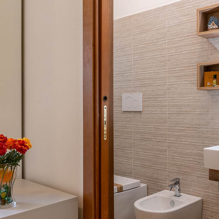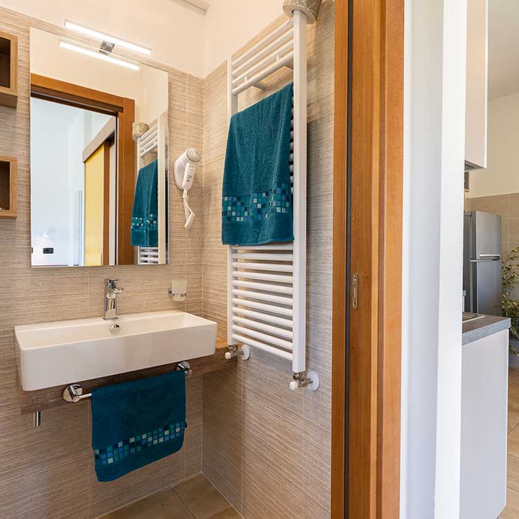 Die Bäder in unseren Unterkünften verfügen über alle sanitären Einrichtungen (Bidet, WC und Waschbecken).