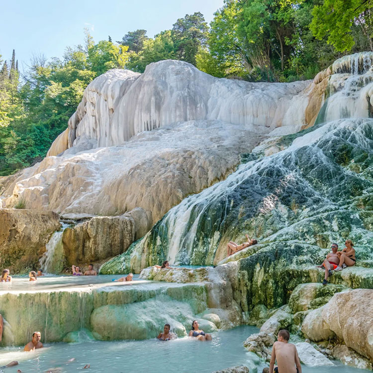 Obwohl die Cascate del Mulino das ganze Jahr über ein idyllisches Ziel sind, gibt es besondere Momente, um ihre Schönheit und ihre regenerierende Wirkung voll zu genießen. Der Frühling zum Beispiel ist eine ideale Zeit, um in die Thermalquellen der Cascate del Mulino einzutauchen und das Erwachen der umliegenden Natur zu erleben. Das Eintauchen in das warme Wasser, umgeben von den Farben und Düften dieser Region, ist unbezahlbar.
